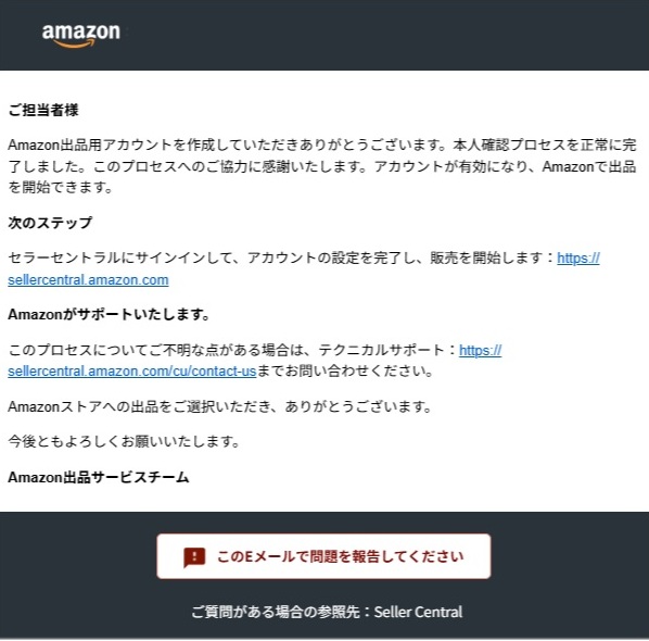 その後、約半日で申請が承認され晴れてわたくしはAmazon物販のアカウントを取得したのです!